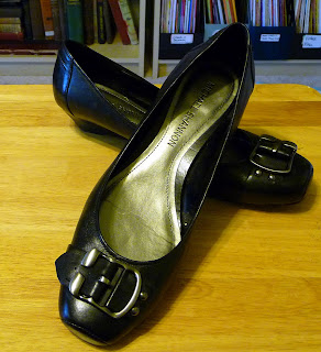 Michael Shannon leather ballet wedges.